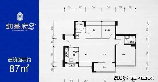 | 约87㎡(横厅)三房两厅两卫 折后总价约445-458万