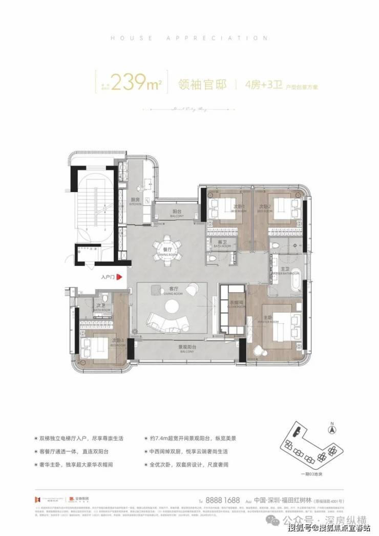 建面约239㎡领袖官邸4房+3卫(T12-01/02)