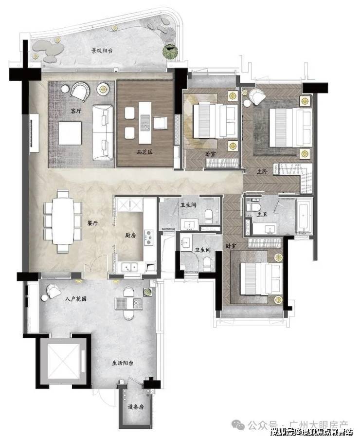 ④超低容积率仅0.99%,除自家独立花园外还打造5个大型下沉式花园并有丰富的功能(如儿童乐园、瑜伽健身冥想、开放剧场等),可满足不同年龄段业主需求。
