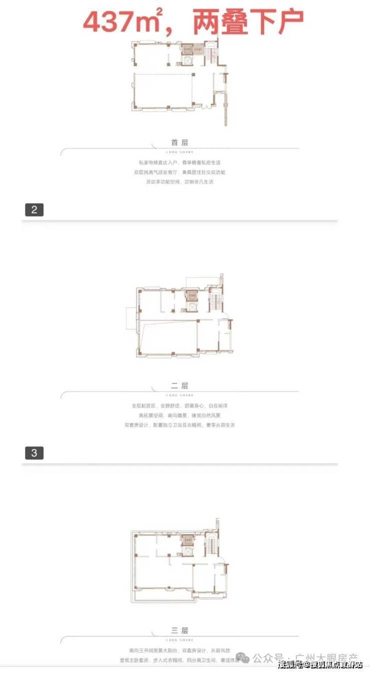 ●产品户型:两叠(上叠392㎡、下叠437㎡),三叠(上叠 285㎡、中叠279㎡、下叠305㎡)