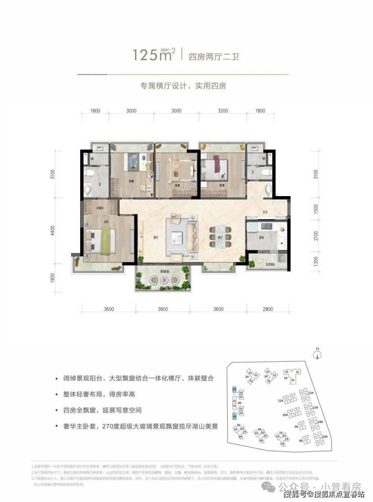 约125㎡四房两厅两卫:专属横厅设计,实用四房