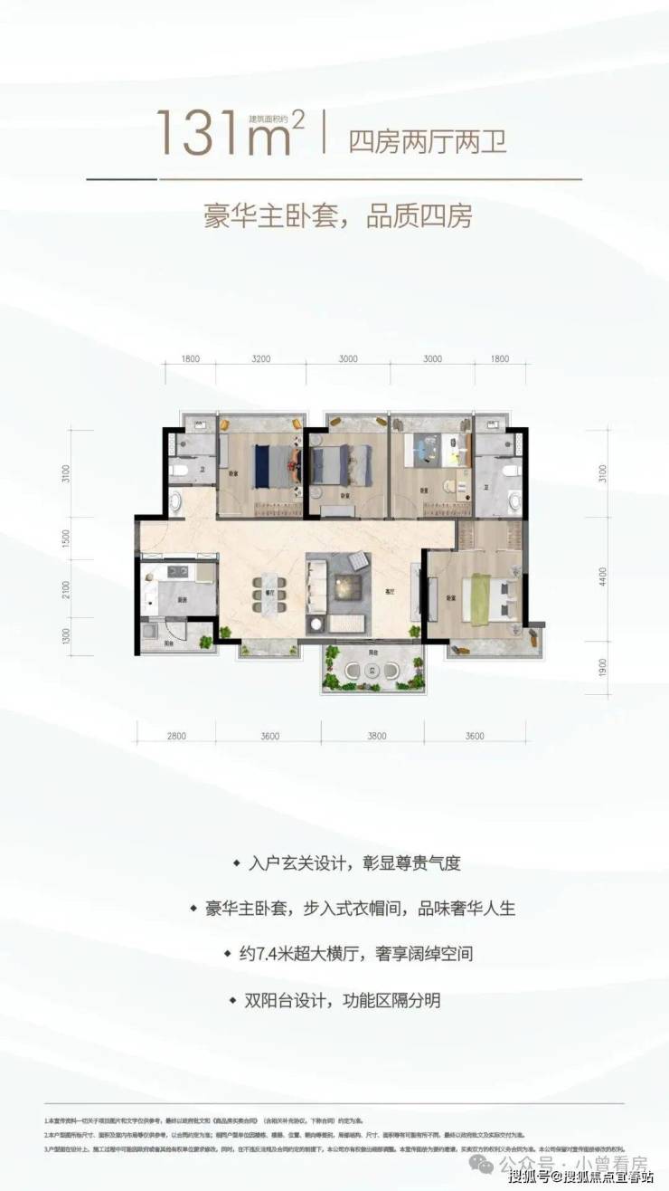 约131㎡四房两厅两卫:豪华主卧套间,高端品质四房