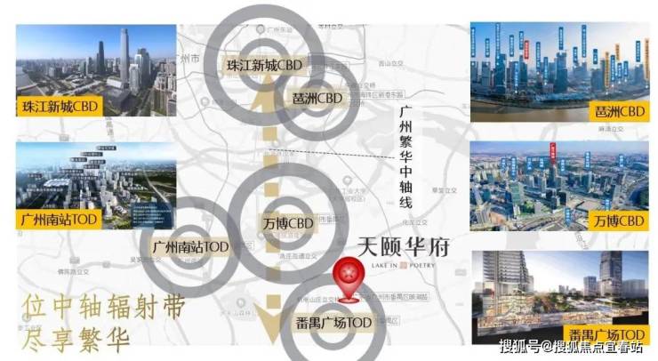 ① 地处番禺广场板块,四地铁交汇的广州枢纽级交通中心(3 号线、18 号线、22 号线、17 号线)