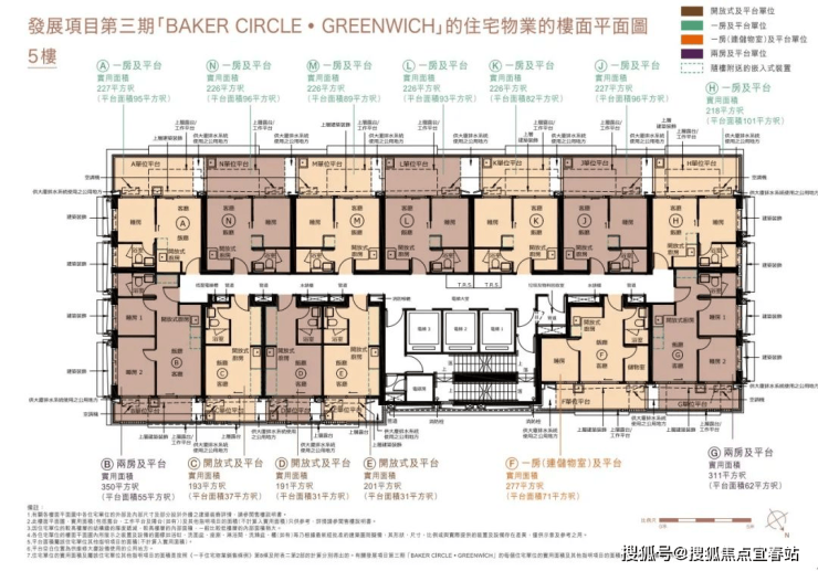 必嘉坊·Greenwich提供278伙单位,实用面积由212至749尺,提供开放式至四房户型,以一房单位为主打户型,占比约55%。