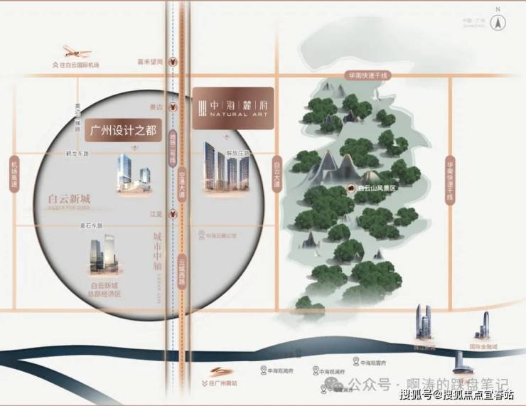 云山珠水,广州不可复制的封面资产。云山西麓豪宅腹地,仅珠江新城1/6容积率,一线环幕山景。约4.2万亩生态森林,天赋自然宜居已然难得,又兼享城市繁华,极致稀缺。半城半山,中海麓府,位居白云新城中轴之上,有设计之都人文、艺术弥漫的想象,也有对望云山的静谧自然。