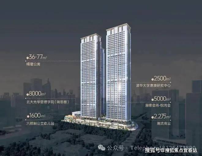 恒裕柏悦湾由2栋47层高公寓与2栋42层商办组成项目自带·约2.2万㎡潮流商业·约5000㎡精英会所·约8000㎡北大光华管理学院(北大光华瑞思楼)·约2500㎡清华大学港澳研究中心·约1600㎡六班制公立幼儿园共同组成约37万㎡垂直综合体——200米深湾超级地标