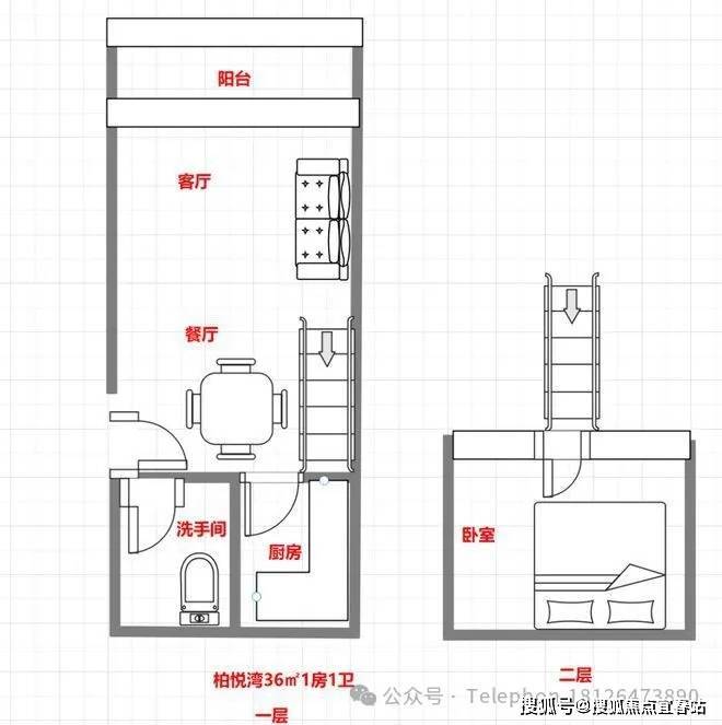 36㎡1房2庁1卫户型图