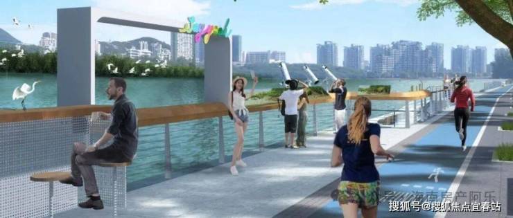河景滨河公园:紧邻着三亚河国家湿地公园,一片绿意盎然的沿河绿廊与健康步道相得益彰,共同构成了一个优越的康氧健身场所。