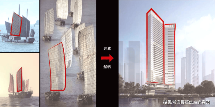 建筑轮廓采用现代简约风格,顶部搭配斜切式飘板,与珠江流线型形态形成视觉呼应,增强建筑动感。