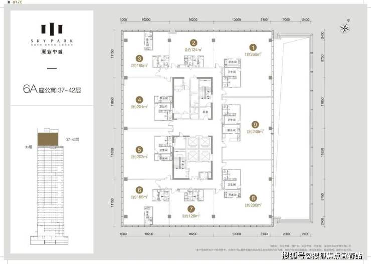 其中6A栋为6-35层为办公,37-42层为公寓;6B栋6-9层为酒店,10-42层为公寓。