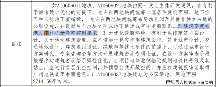 “≤ 2.1的容积率+建筑高度必须满足岑村机场净空控制+新规配建要求”。