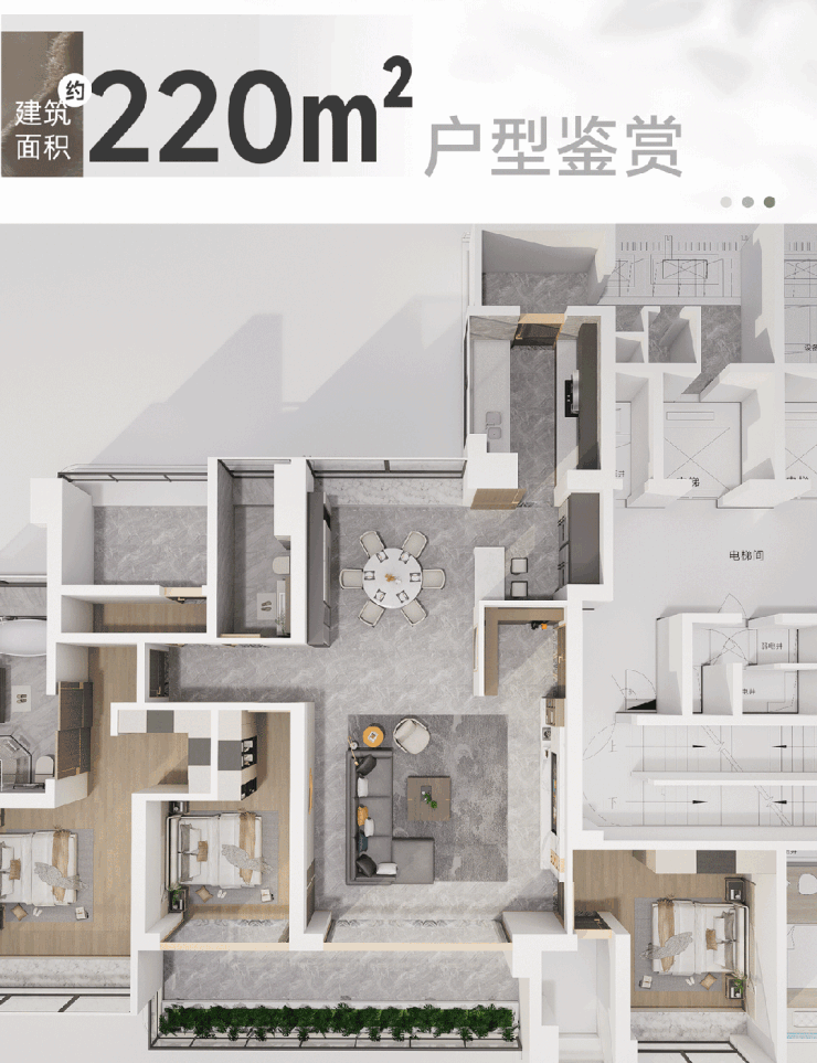 全栋只做了一个户型——建面约220平,圈层感更为纯粹!