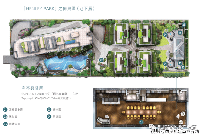 【项目介绍】Henley Park共建有六幢住宅建筑,包括2幢高座住宅大厦及4幢低座住宅大楼,合共提供740伙分层住宅。项目两座高座住宅前临启德体育园,预料享有广阔维港景致与体育园景。低座住宅大厦和低层住宅单位则多望内园景。高座住宅大厦命名为GRAND HENLEY,分为第1A座及第1B座,均楼高31层,各配置4部升降机。每层各设7-12伙单位,合共提供660伙分层住宅。低座住宅大楼命名为EDEN,共有4幢,均楼高5层,各配置两部升降机。地下至顶层5楼属住宅楼层,每层各设4伙单位,合共提供80伙单位。