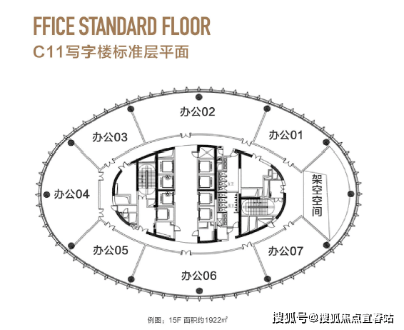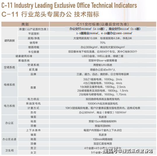 C-11楼座,行业龙头专属办公区,建筑形体为直筒椭圆形塔楼,立面形式与C-12总部大厦的立面璀璨呼应;C-11建筑楼高约99.6米,共19层,办公建筑面积约2.53万㎡,商业建筑面积约1.1万㎡,为商务企业首选的机遇平台。