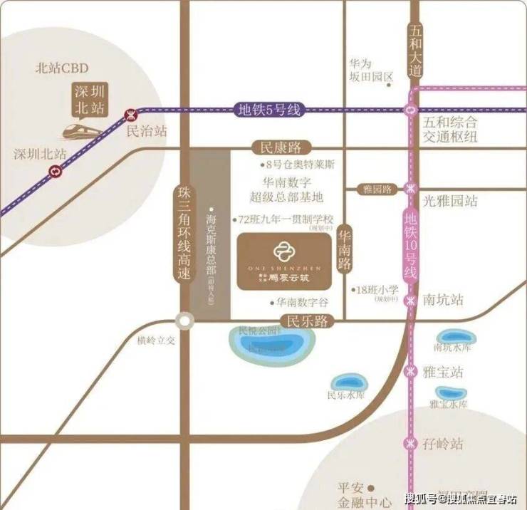 中建鹏宸云筑地处港深莞大中轴发展线上,北向坂雪岗科技城、龙华数字经济,南向福田香港金融经济圈,地理位置优越,夹在中间,链接了龙华、福田、龙岗坂田、南山、罗湖等区域