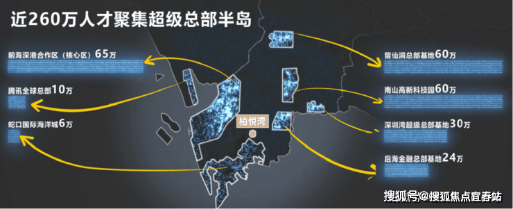 【超级总部半岛之核——超百万人才的中央智区】柏悦湾位于由深圳湾、蛇口湾、前海湾围成的南山半岛,也是“超豪半岛”;南山半岛串联7大总部基地,吸引大批诸如腾讯、大疆、阿里巴巴等行业龙头企业,以及大批总部企业入驻,未来将吸引260万人才聚集