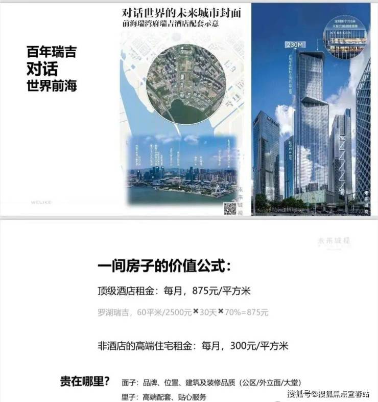 项目33-50F为瑞吉酒店,5-31F瑞湾府目前在售190-360㎡酒店式行政公馆,层高4.4米。