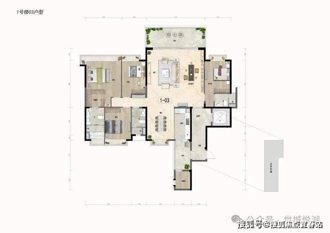 横厅布局,户型方正通透,实用率高。约32㎡超大客厅。四个房间轻松放下1.8米大床。