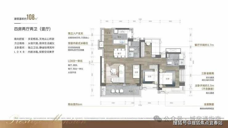 臻品户型:主打108-143㎡纯四房设计,全明户型,LDKB人性化动线,配备独立玄关、双飘窗主卧、步入式衣帽间等高端配置。