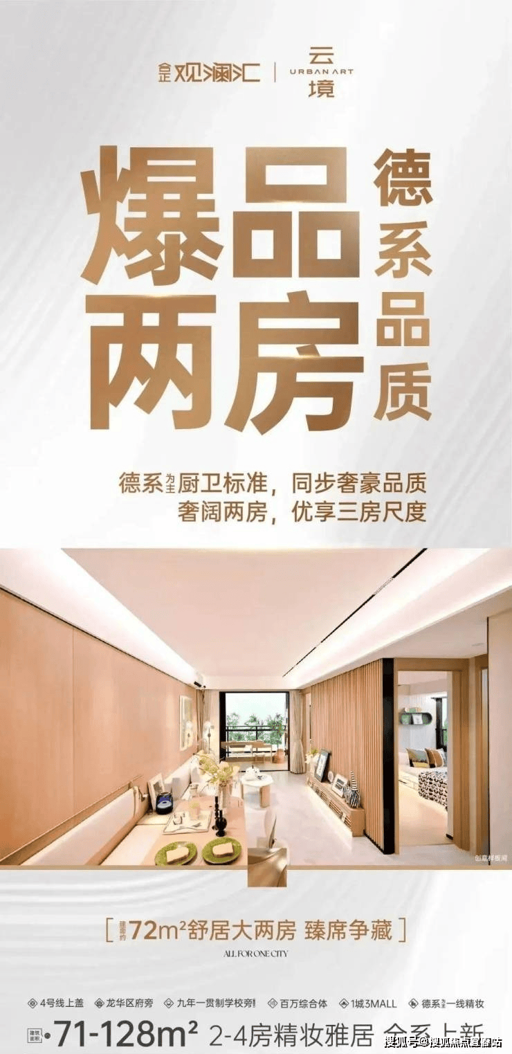 龙华观澜百万大盘【合正观澜汇三期◆观澜汇云境】推出2栋和4栋一、二单元,面积72-75㎡两房一卫,89㎡三房一卫,105㎡三房两卫和125㎡四房两卫,共617套,交房时间预计2026年12月31日,精装修交付。