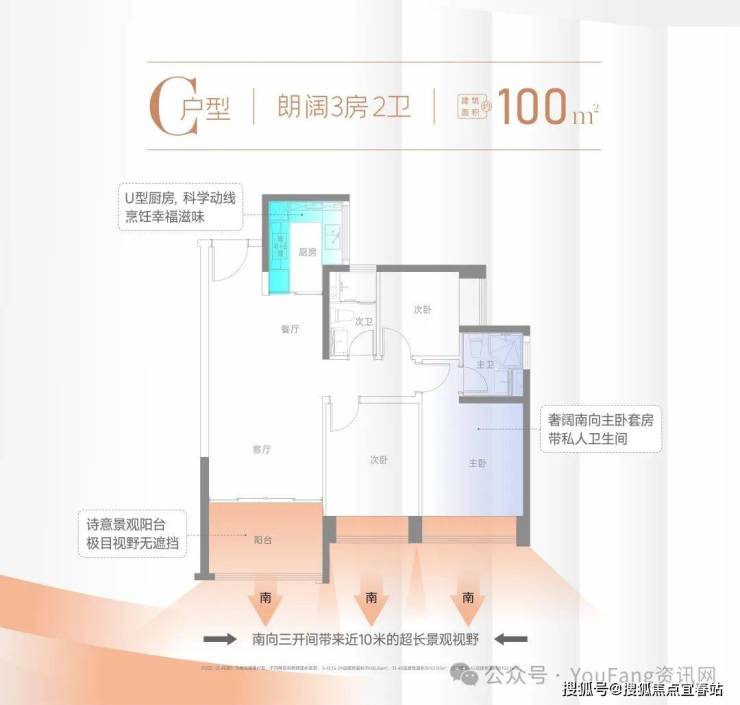 (3)U型大厨房,大客/餐厅,大阳台!(4)推门见山,辽阔视野!