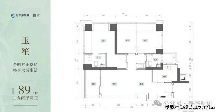 项目首推约89-169㎡3-6房进阶大宅,最高约104%实用率,同等面积多一房