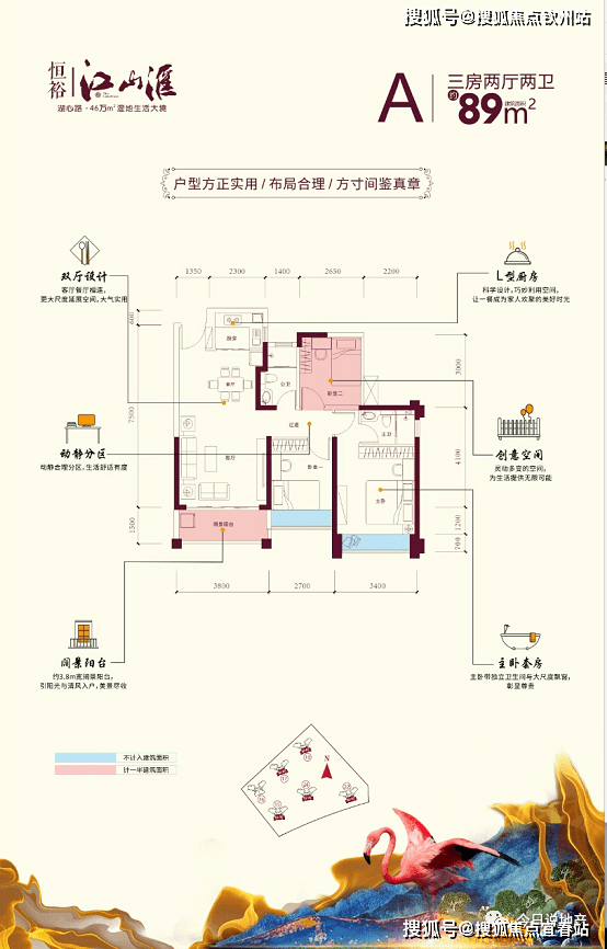 恒裕江山汇:89㎡三房两厅两卫图片