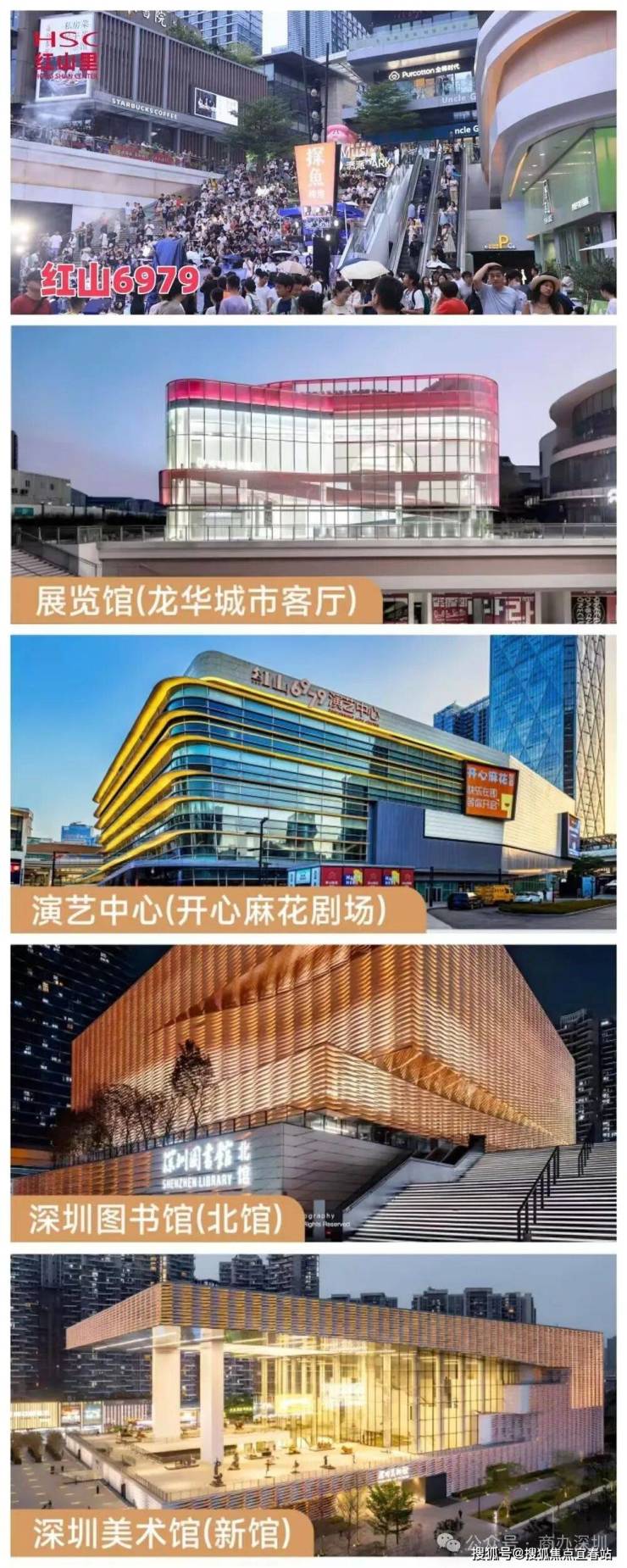 4栋公寓、3栋约5万平办公、1栋1.1万平酒店、6.5万平沉浸开放式街区(200+品牌商家)、1.2万平演艺中心(开心麻花剧场)、约4536平展览馆(龙华城市客厅)、约7.2万平深圳图书馆(北馆)、约6.6万平深圳美术馆(新馆),共约31.4万平的体量,均已在2020年6月-2023年11月期间陆续分阶段开业!交通配套