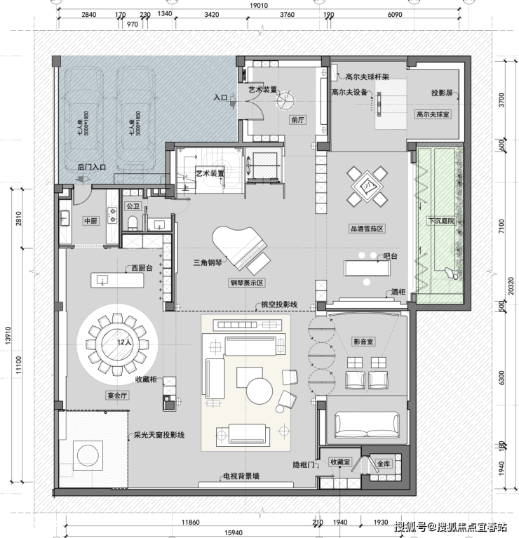 负二层影音室、高尔夫球室、品酒雪茄区等专属空间,满足多元休闲娱乐追求,精筑格调生活范本。
