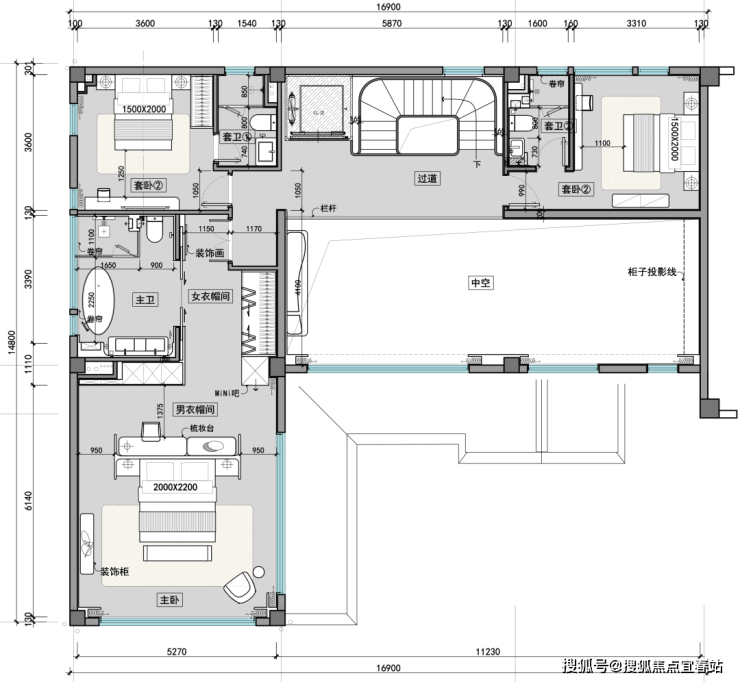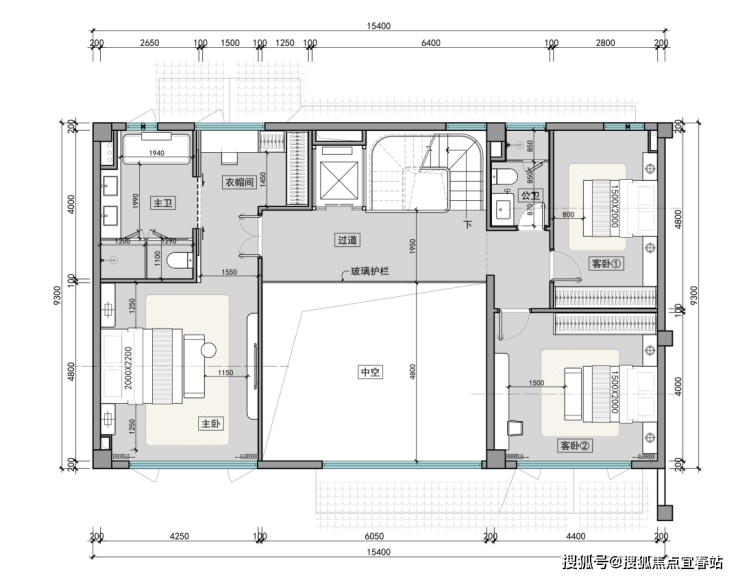二层卧室布局错落有致,挑空区丰富空间层次;