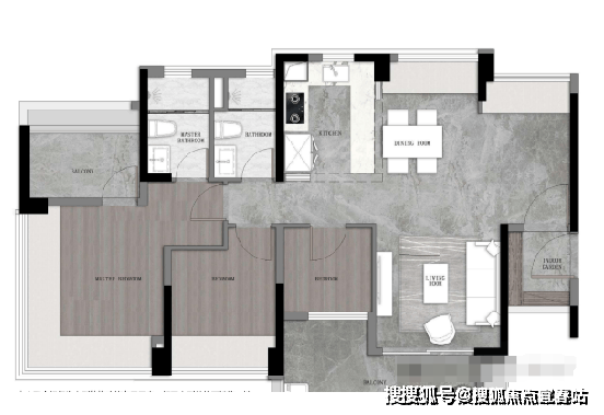 建面约75-86㎡户型:三空间两卫设计,适合年轻人或小家庭居住。四开间朝南,全明转角玄关,开放式厨房,开阔景观阳台,南北对流主套及衣帽间,让每一寸空间都充满阳光。
