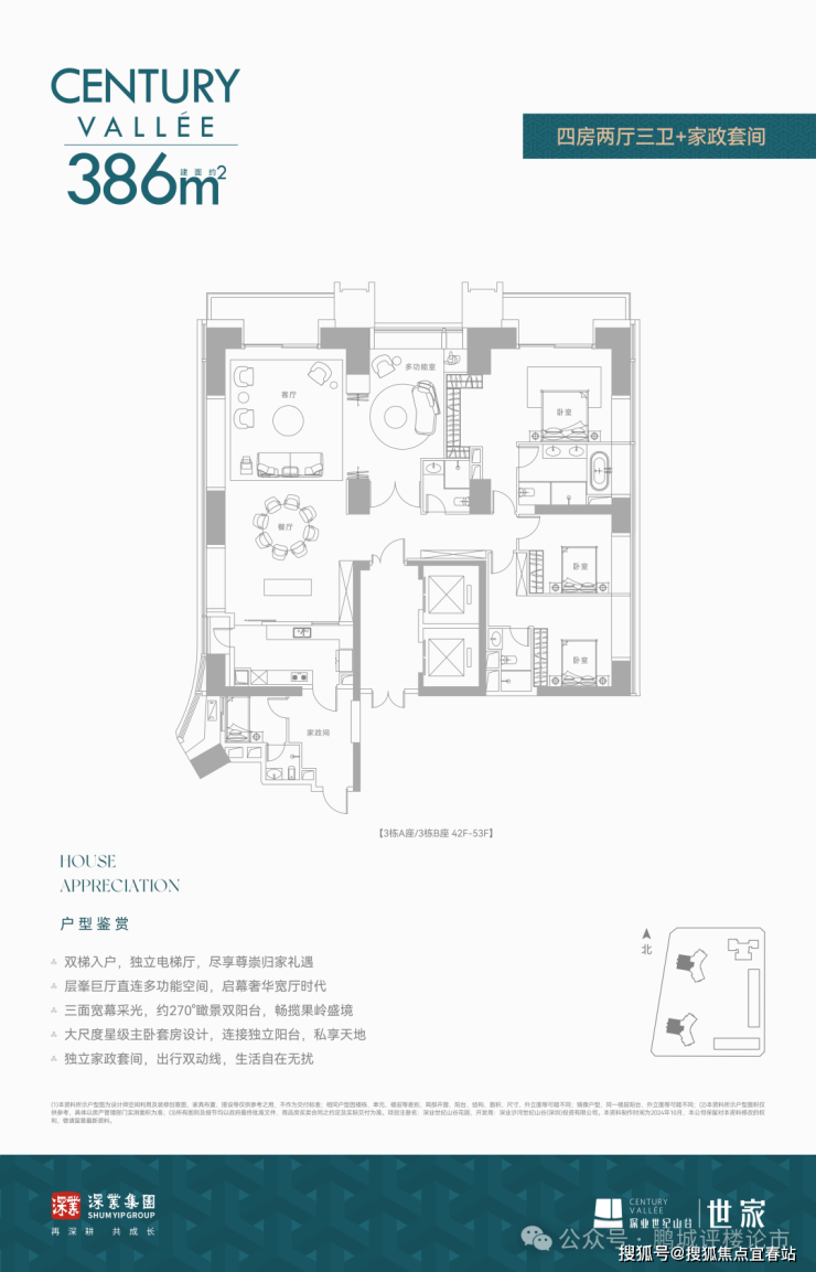 🔸建面约386㎡ 四房两厅三卫+家政套间