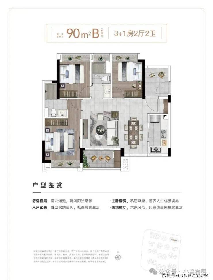【90m²B 3+1房2厅2卫】