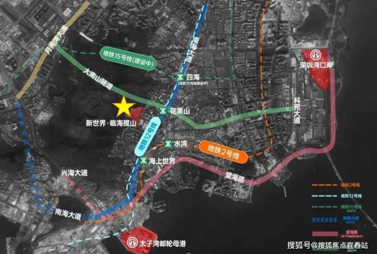 交通与区位:项目地处“湾区、自贸区、先行示范区、特区”四区叠加板块,承前海启后海,是粤港澳大湾区核心引擎。周边交通便捷,地铁2号线水湾站、海上世界站,12号线花果山站(建设中)均可到达;同时,南海大道及沿江高速等主干道环绕,邮轮母港、蛇口港、深圳湾口岸等交通枢纽近在咫尺,方便居民出行。