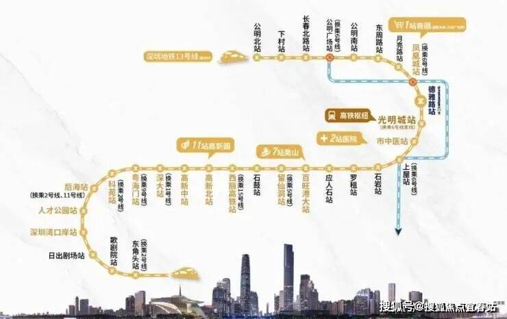 交通配套:观玥名邸家门口就是13号地铁线“德雅路站”,以前的同观路站已经改名,最高时速100公里,预计2025年开通运营,1站可到光明城站,换乘6号线/光明城高铁站,3站可到石岩,7站到西丽,8站到留仙洞总部基地,11站到南山高新园。