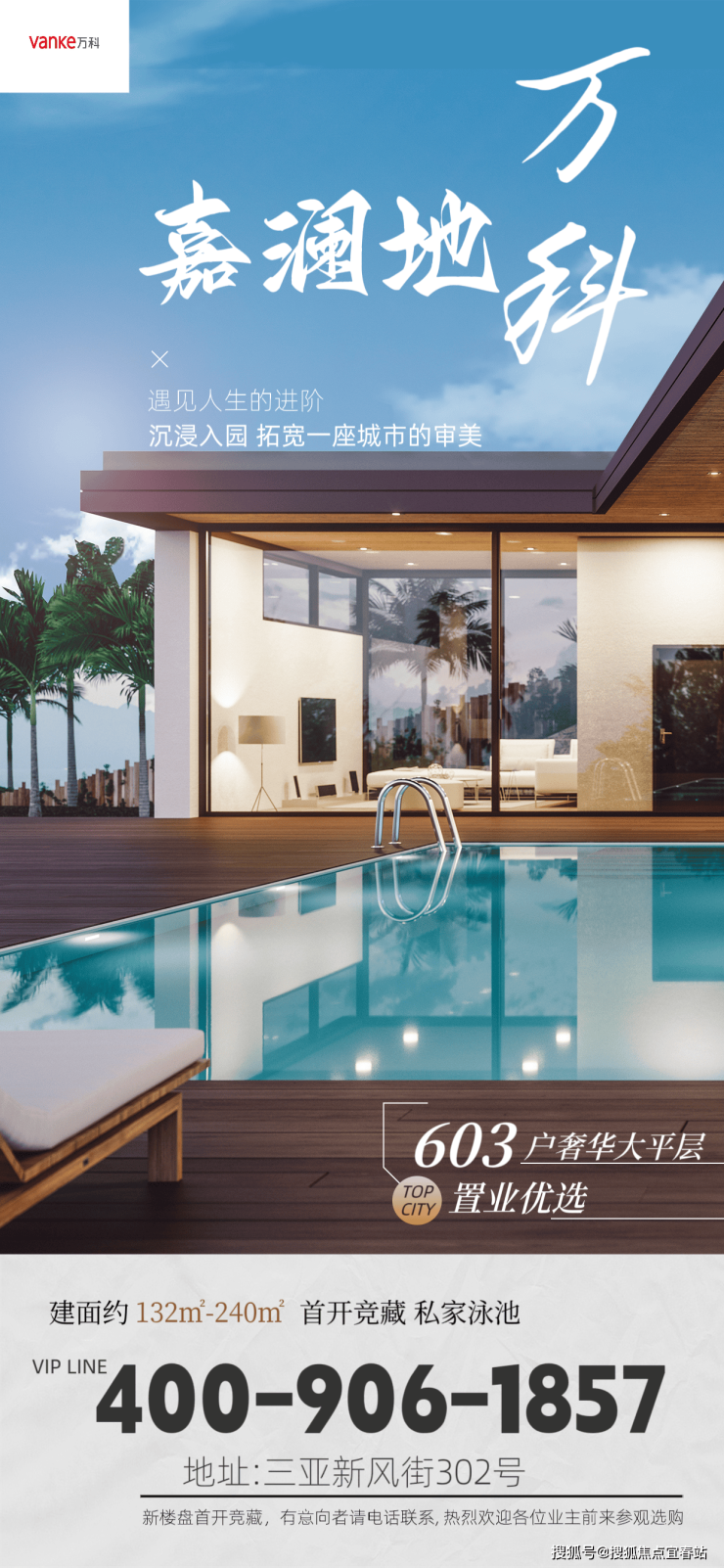 🐴万科三亚嘉澜地展示中心电话:400-906-1857(预约看房,VR实景),400-906-1857 为【海南·万科三亚嘉澜地】开发商直营热线,中介勿扰。