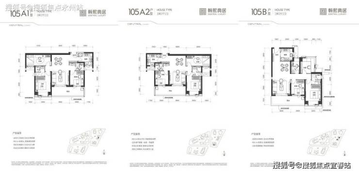 105㎡三房两厅两卫:紧凑实用的改善入门款,双龙抱珠与竖厅双布局。