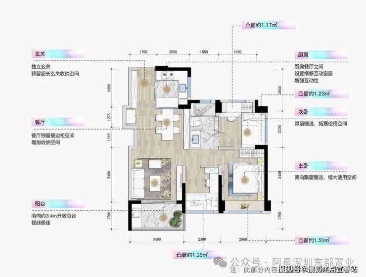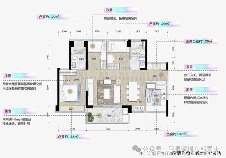 •整体户型方正实用,多飘窗利用,79%超高使用率;
