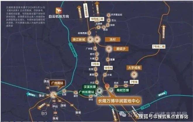 地铁3/7/18号线三线环绕:步行8分钟至汉溪长隆站(3/7号线),1.2公里至南村万博站(18号线)高效串联珠江新城、琶洲CBD。