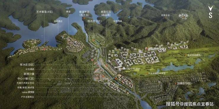 项目重点建设中心小镇C区、艺术聚落F区、伴山美地B区三大园区,并串联现状山地游乐、国王酒店、欧洲小镇与集散中心。