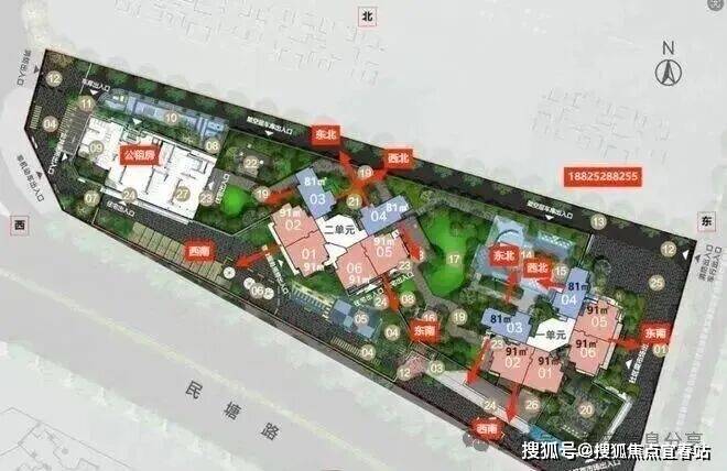 3、套内使用率较高,三栋均是百米以内的建筑,根据面积户型以及建筑高度可看出套内使用率应是高于附近所有竞品的,81平可做到3房2卫,也高于鸿荣源尚云