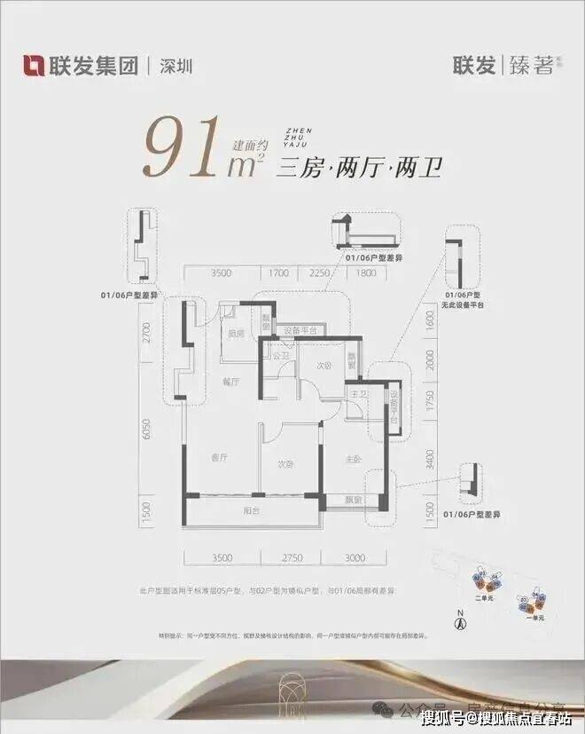 ①精聚焦青年家庭需求,联发精研定制建面约81/91㎡超能三房两卫成长空间,综合使用率高;