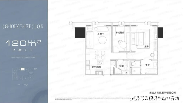 1. 120㎡两房两厅两卫(入门级高端公寓)