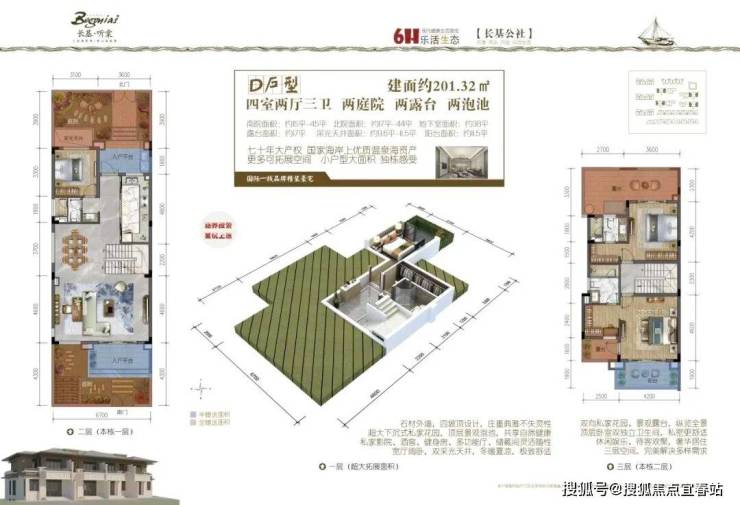 四联排别墅:201-203㎡(赠送面积约:108-128㎡)