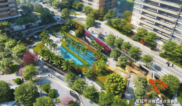 小区内部巧妙地把泳池、儿童乐园、迎宾庭园、观景平台等分区缝合在一起,整体张弛有度。到处都是景,到处不同景。不同的角度、不同的视角,甚至不同的阳光,不同的高度,有不一样的美感。