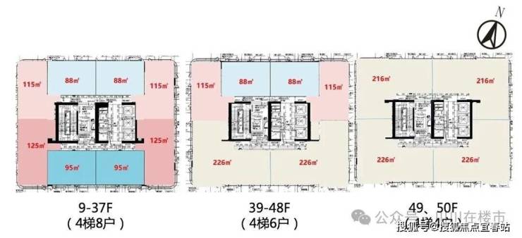 ◎户型建筑面积:约88、95平一房一厅115、125平两房两厅、216、226四房两厅