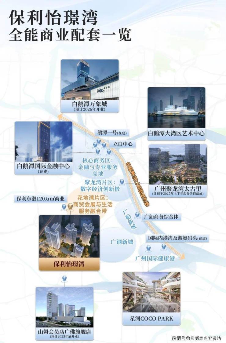 项目自身规划约40万㎡四大滨水商业街区,约700米处万科规划有18万㎡的理想花地商业,周边现有的有芳和荟购物广场,荔胜广百等商圈。