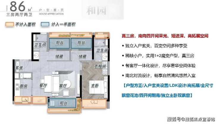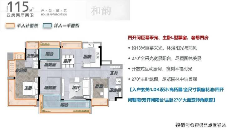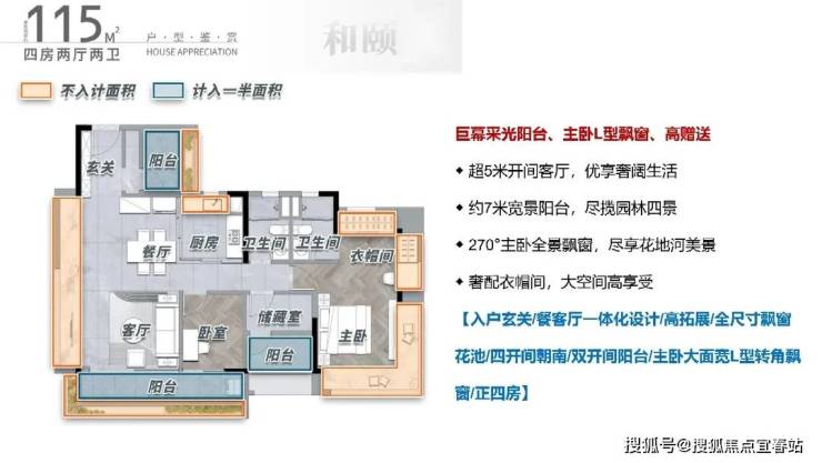 115方,多房朝南厅出大阳台空间感满满,下班放空的好地方,同时空气对流和采光不忧愁,800mL型飘窗额外拓宽功能空间,收纳力拉满,灵活多功能空间,自由组合,满足收纳达人的整理需求