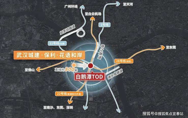步行约800米可到1号线芳村站,四线合一超级枢纽(包含1号线已开通,11号线已开通,22号线建设中,28号线规划中),轻松链接全城,未来0换乘直达广州站、广州南站、白云机场等重要交通枢纽。