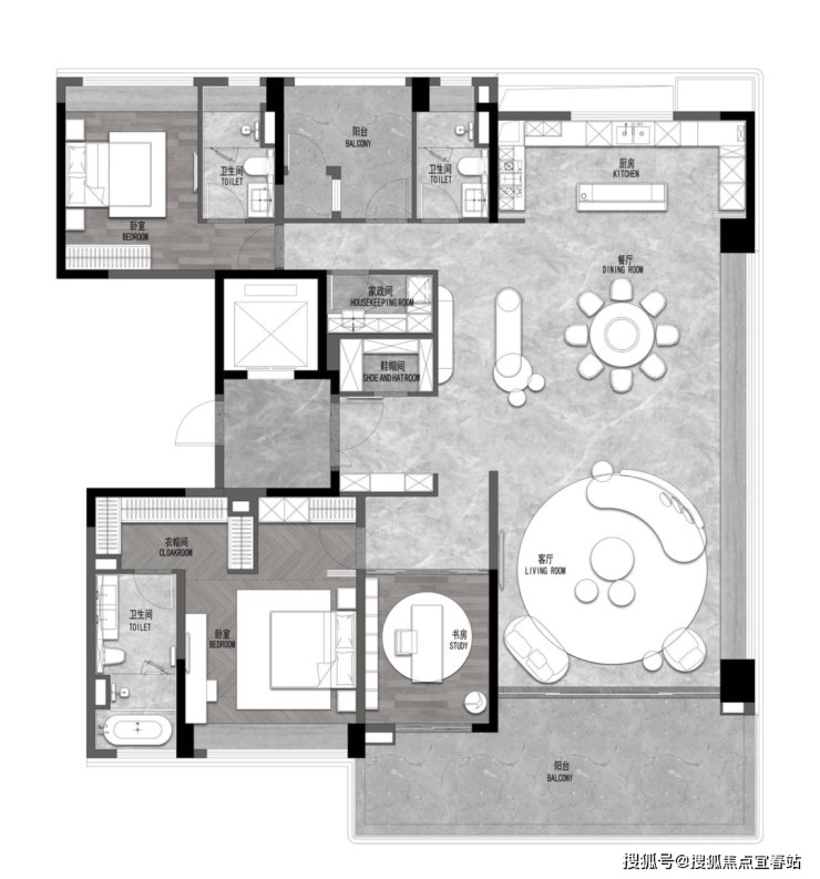 此外,招商华玺还借鉴了国际知名建筑设计师贝聿铭的“消隐设计”理念,通过技术设计提升了空间的洁净感和美感。这种设计理念不仅体现在厨房空间上,还贯穿于整个大平层的各个角落。无论是客厅的开放式布局、卧室的私密性设计还是户外阳台的景观打造都无一不体现出开发商对细节的精雕细琢和对生活品质的不懈追求。